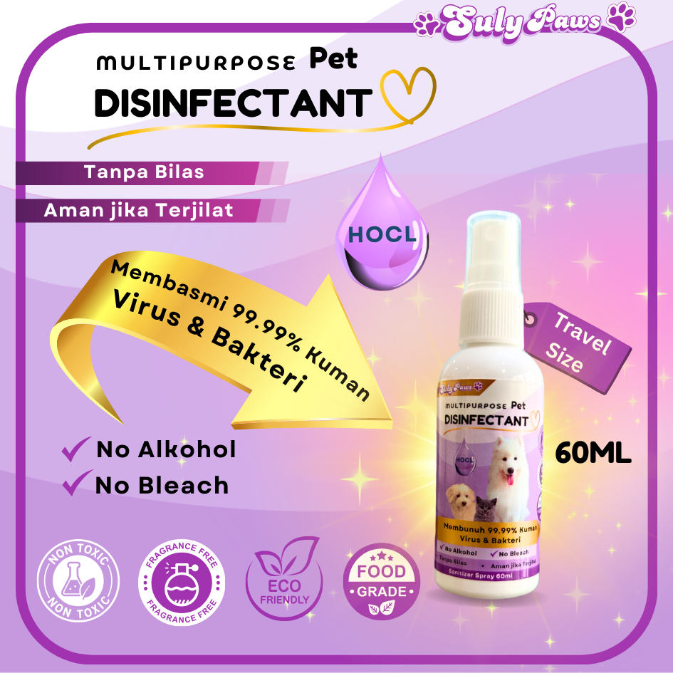 Multipurpose Pet Disinfektan HOCL 50 PPM. Travel Size 60ML